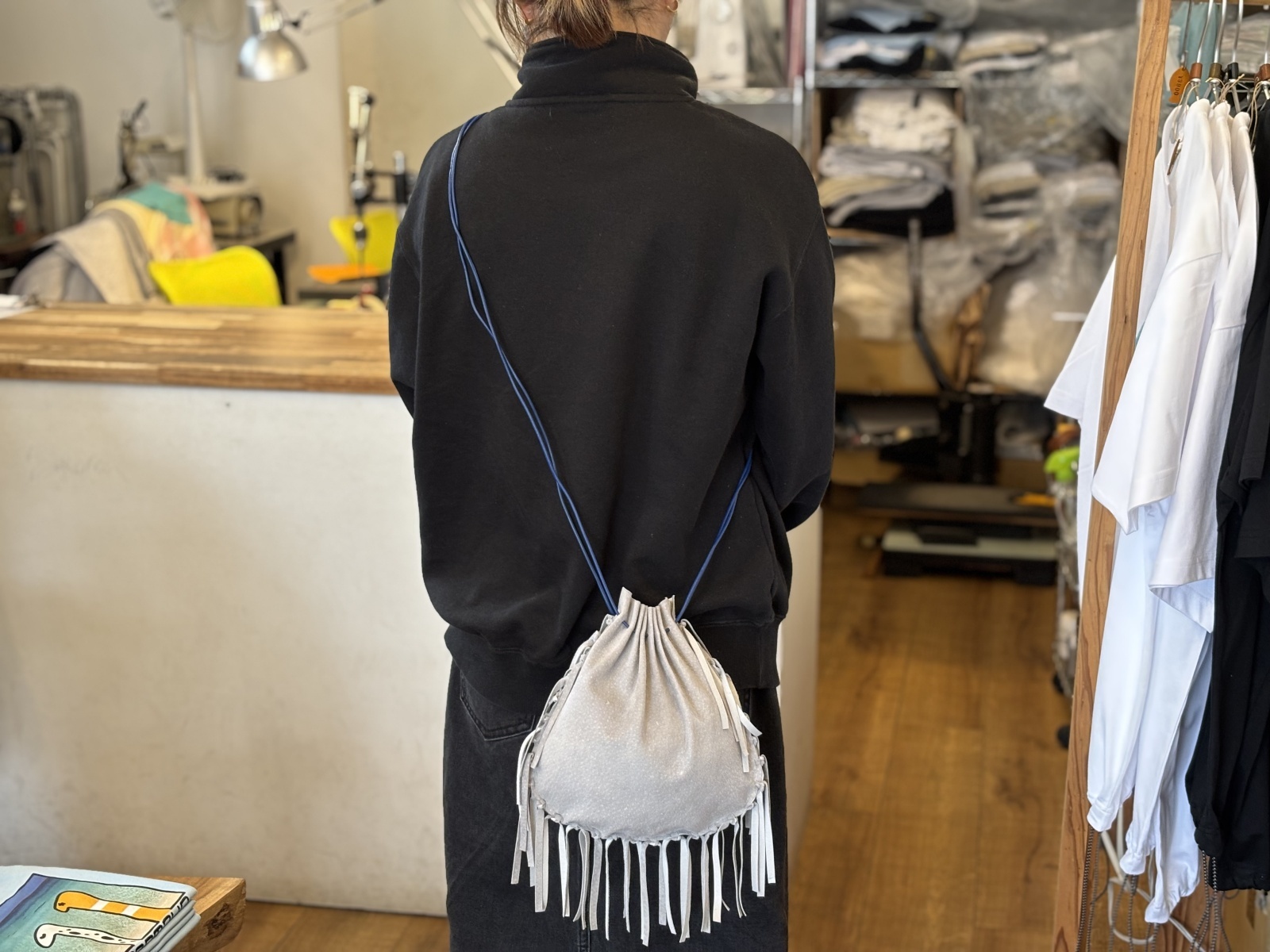 長さはお好きなところで結んで調整できます。